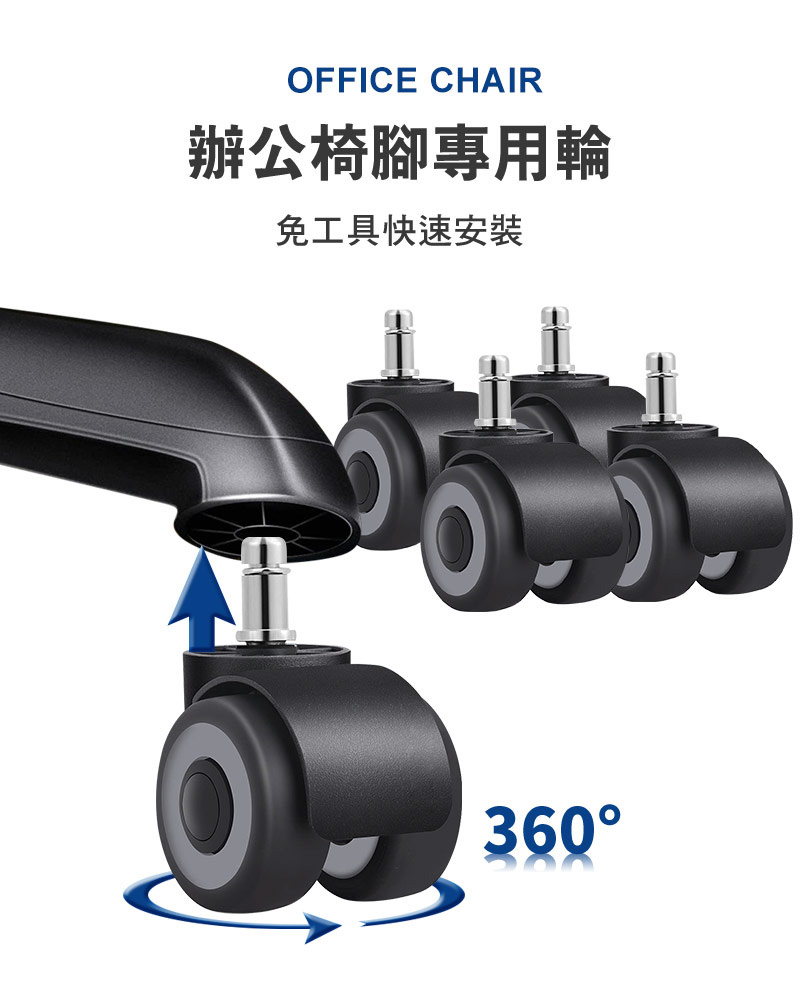 【G+居家】2組辦公椅2吋萬向輪5入組(活動腳輪/電腦椅輪子/靜音輪/萬向輪/直插式)
