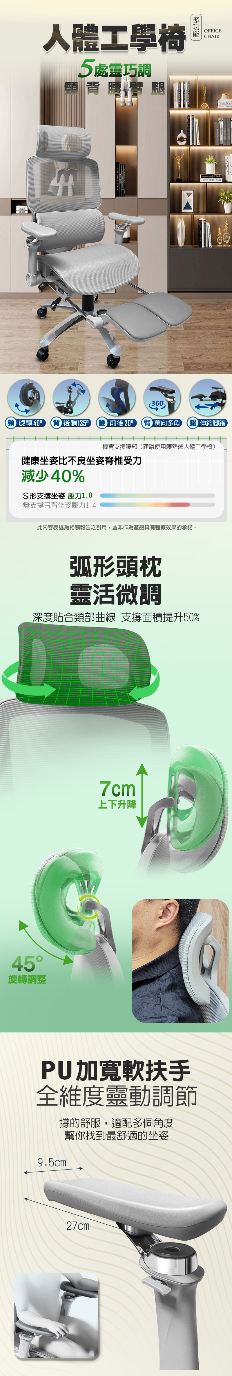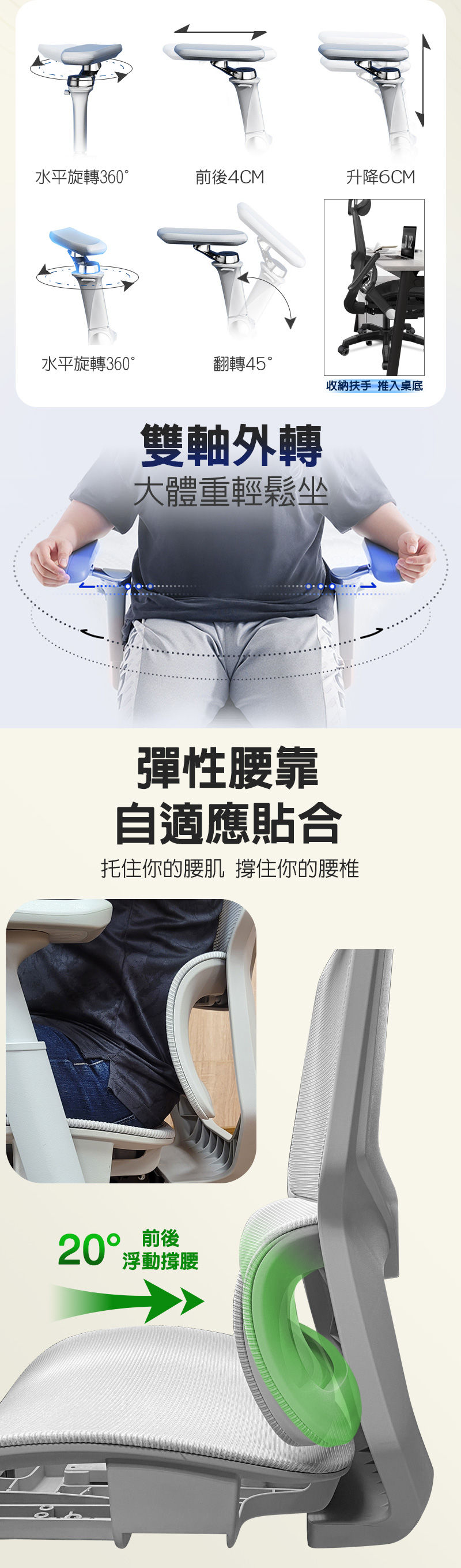 【G+居家】免組裝 人體工學8D萬向軟扶手電腦椅-灰色-鋁合金腳架-大平腳(2吋炫風水晶黑(有飾蓋))