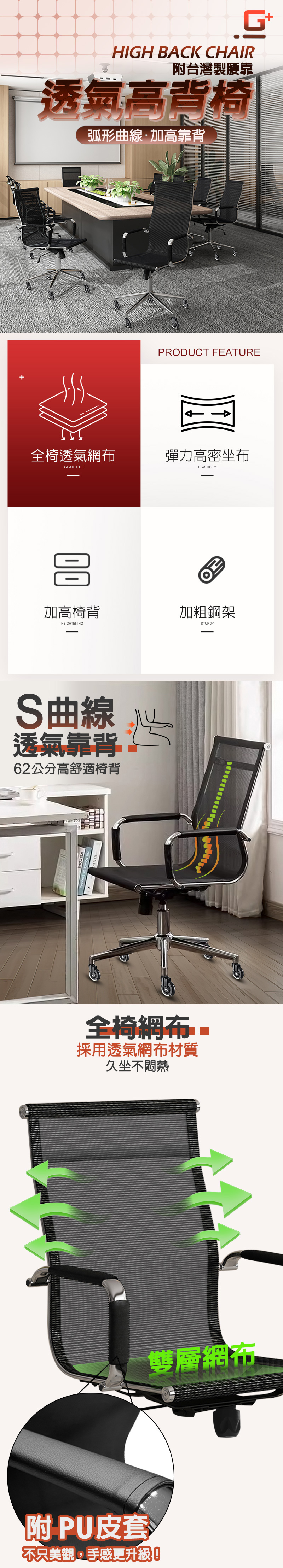 【G+居家】免組裝 高背透氣網布主管椅附台灣製人體工學腰靠枕-黑色腳架