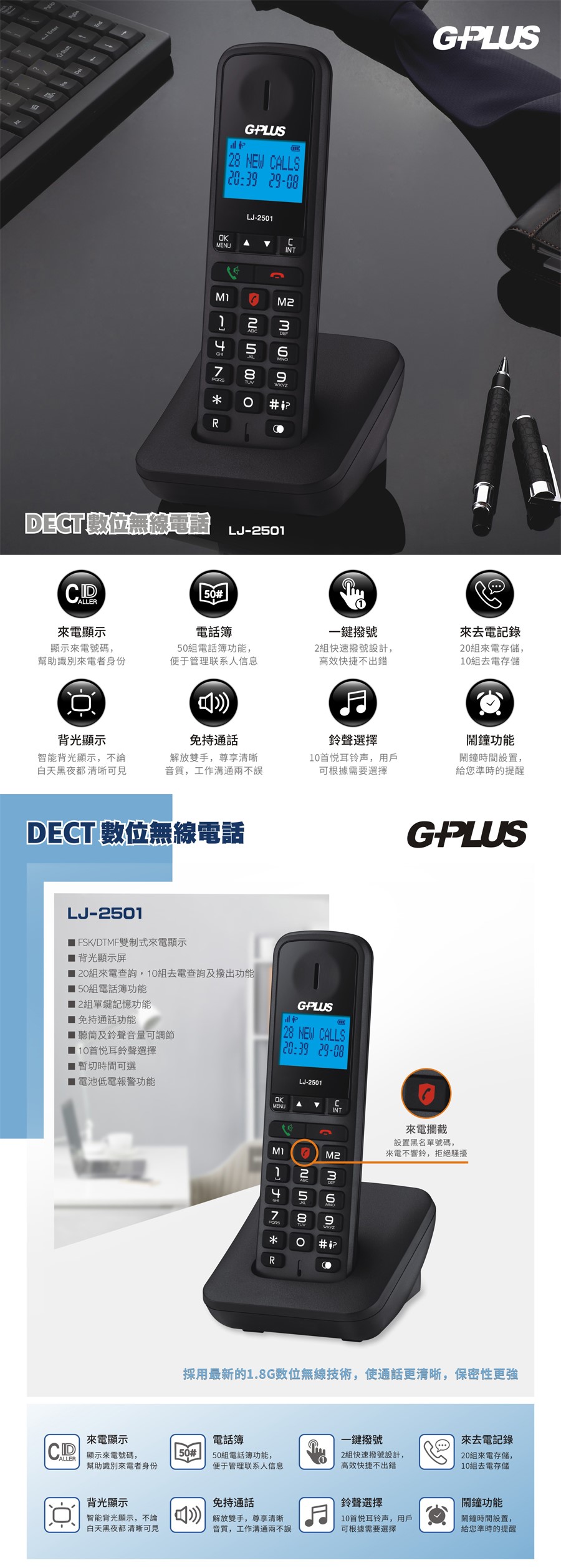 G-PLUS DECT數位無線電話LJ-2501