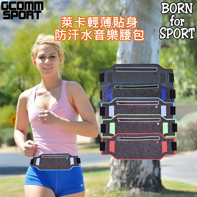 GCOMM SPORT 萊卡輕薄貼身防汗水音樂腰包 淺水藍
