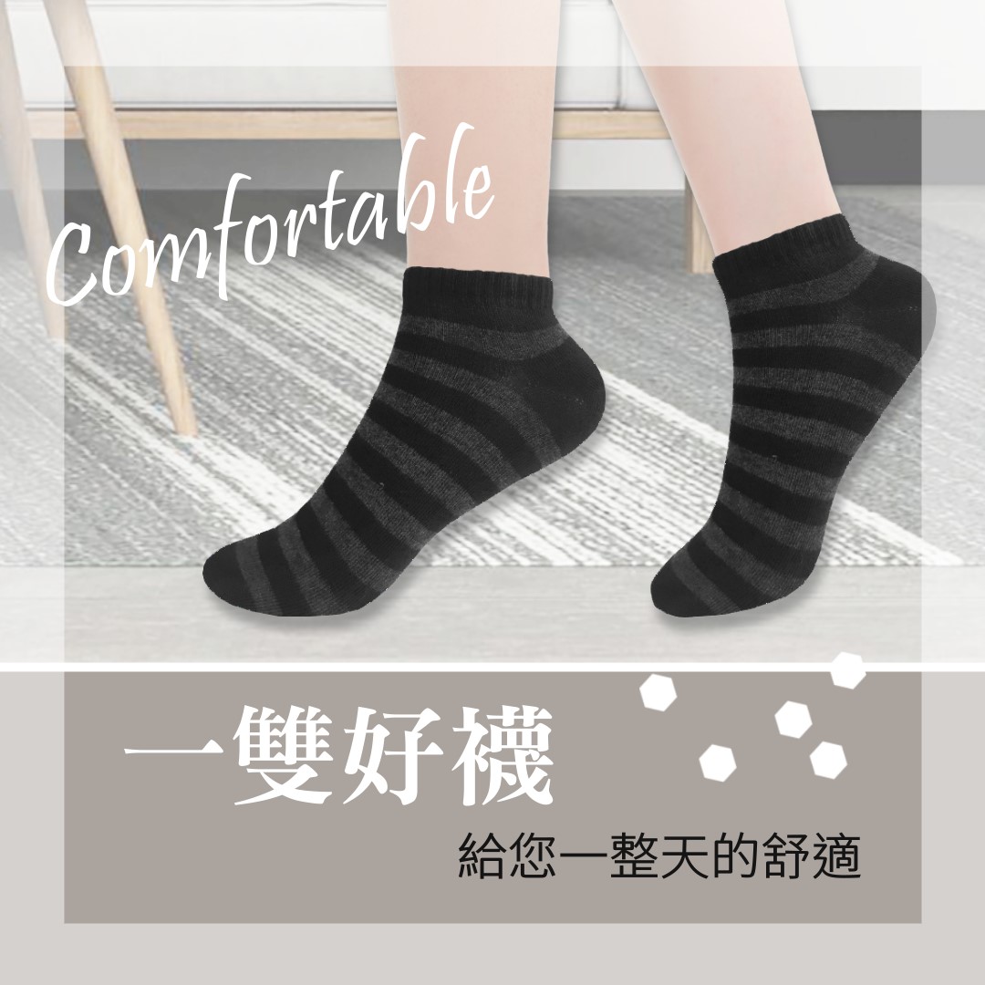 【款式】一組四雙 (條紋黑、條紋灰、拼接黑、拼接灰各一雙)