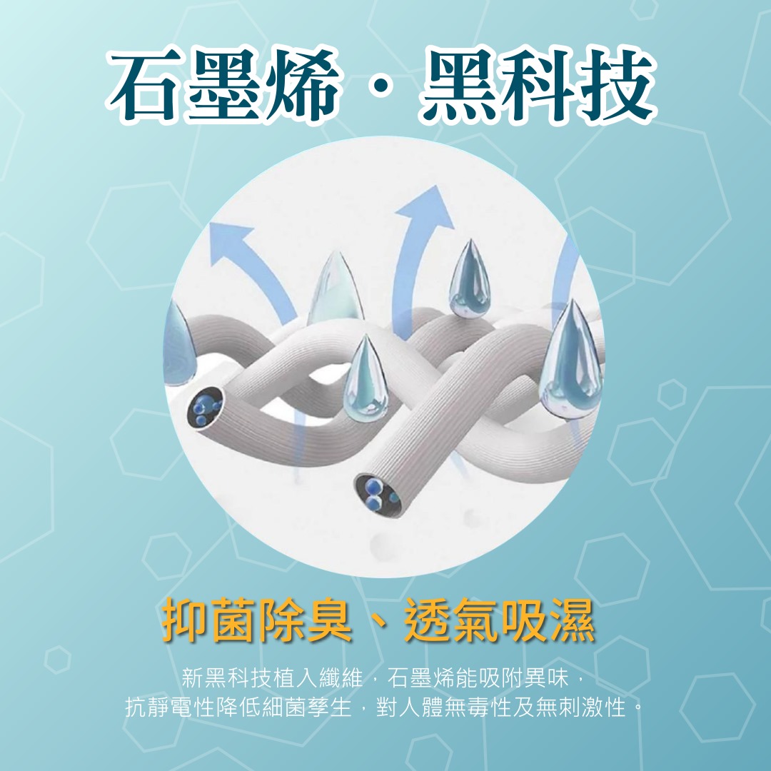 【成分】77%聚酯纖維、3%橡膠、20%石墨烯纖維