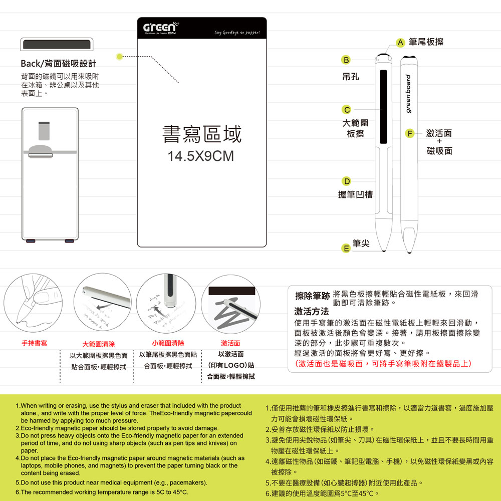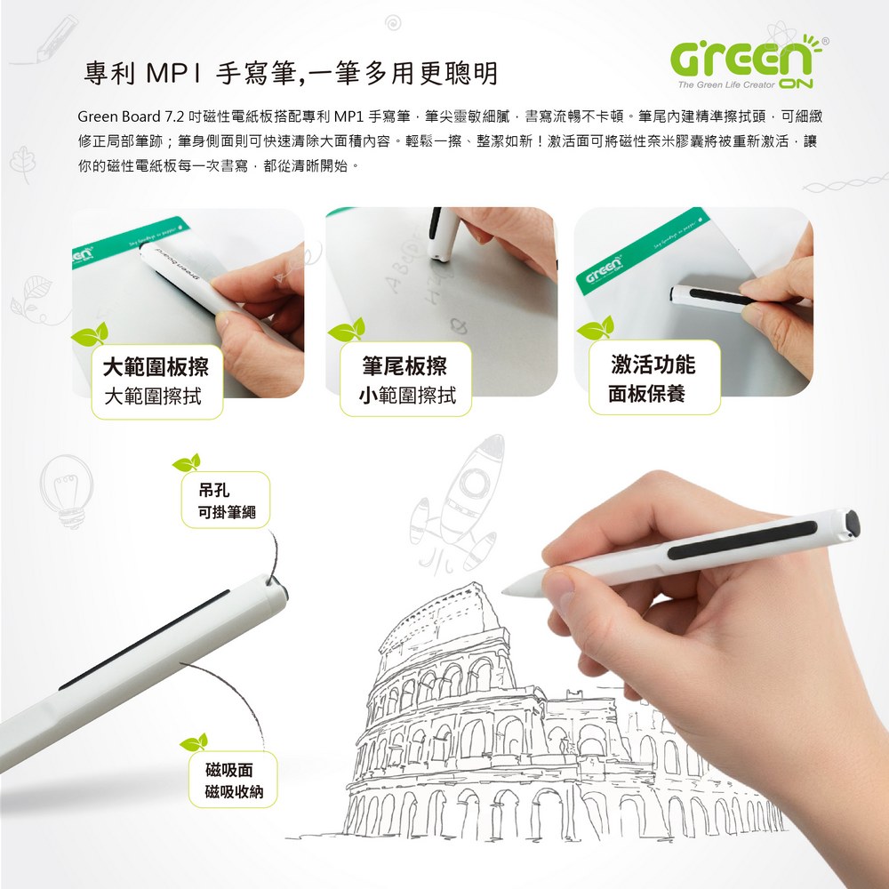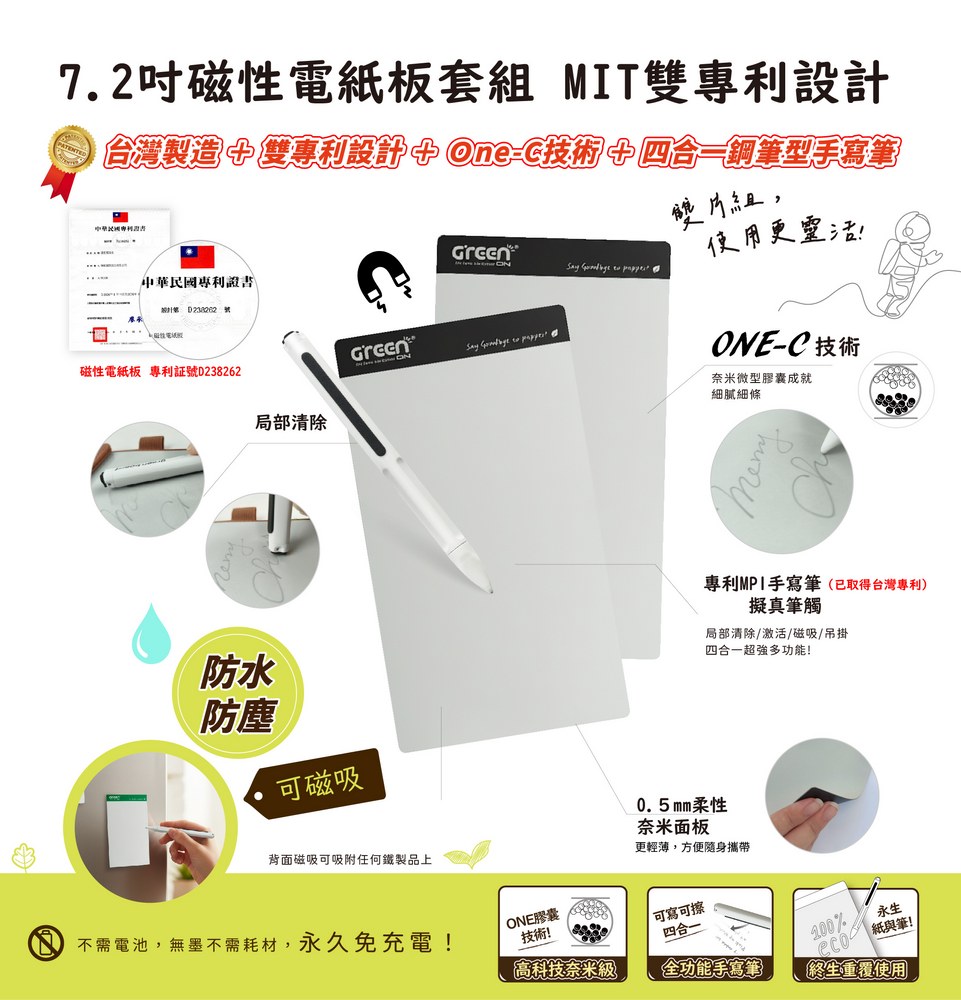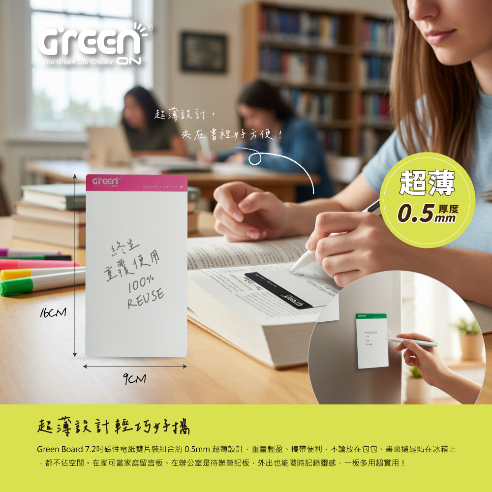【Green Board】7.2吋磁性電紙板 MT7進階收納組(電紙板x2+手寫筆+皮革夾) MIT雙專利設計 0.5mm超薄軟性電子紙 局部清除手寫板