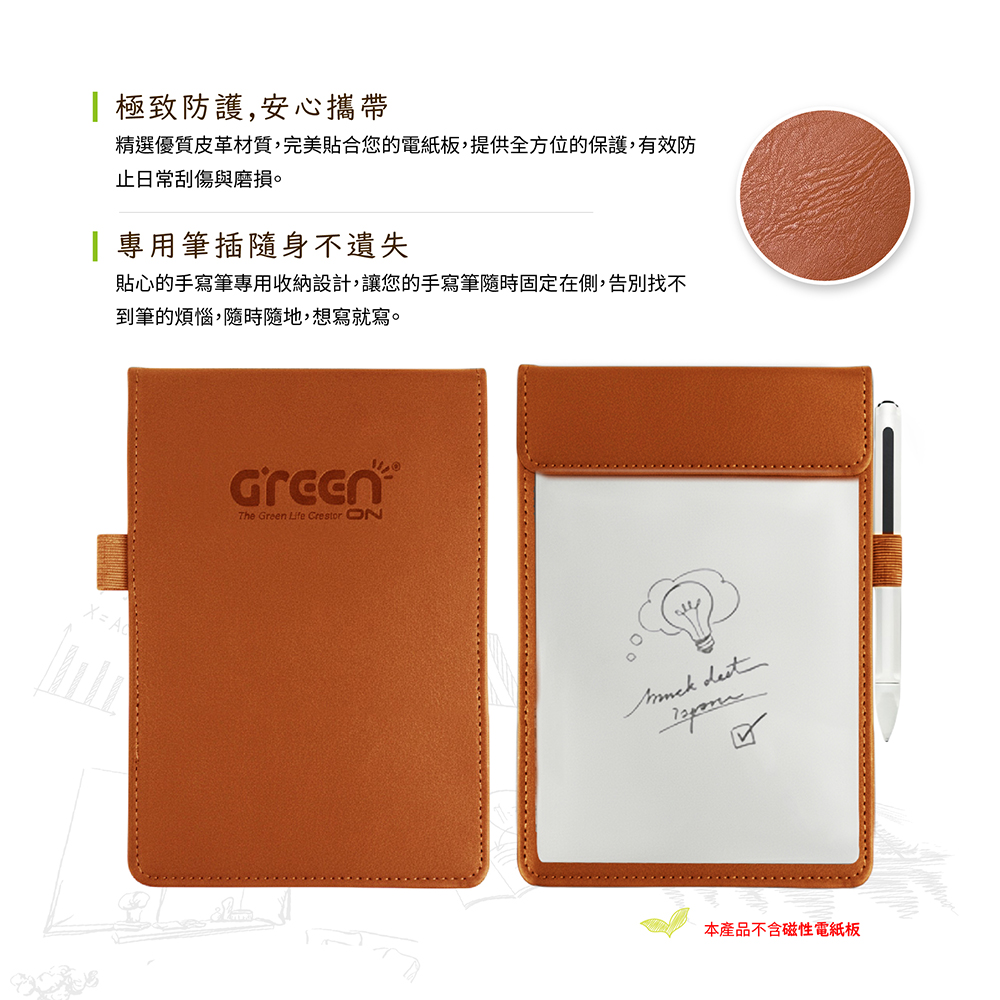 【Green Board】8.5吋磁性電紙板專用皮革夾+手寫筆組 極致防護 手寫筆收納設計