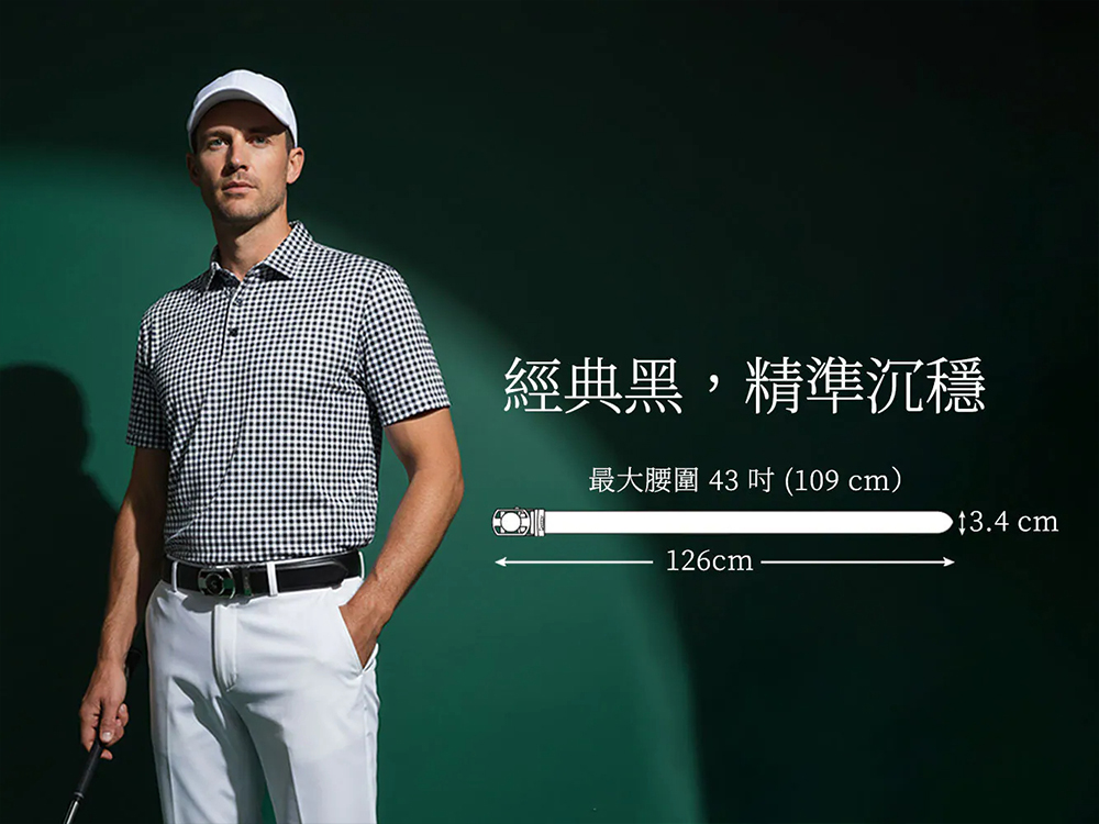 -皮帶長度:120 cm(最大腰圍 43 吋)。