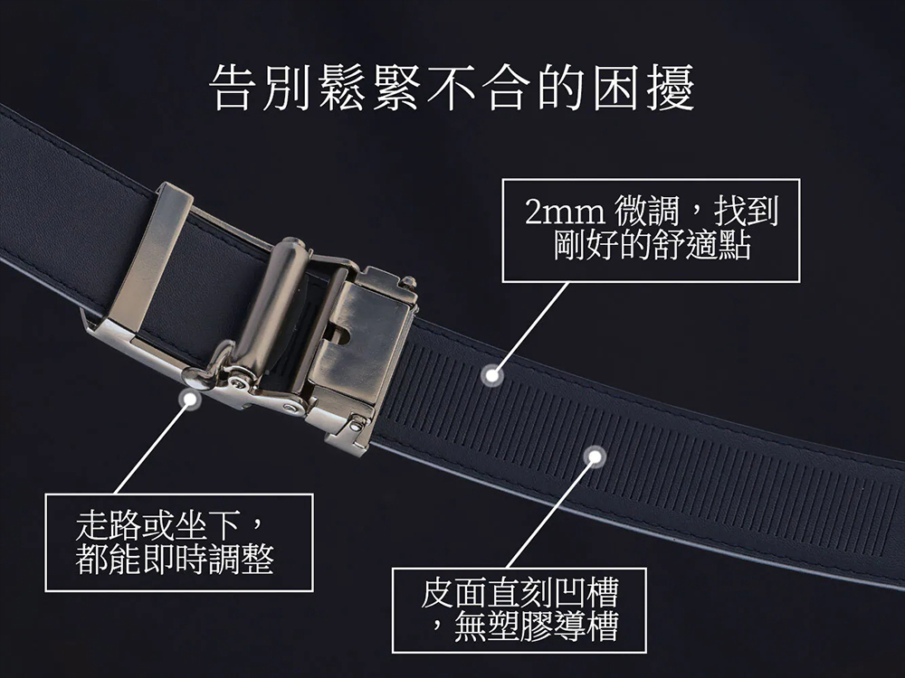 -改良傳統皮帶調整不精準的缺點,操作更直覺、鬆緊更易調整。