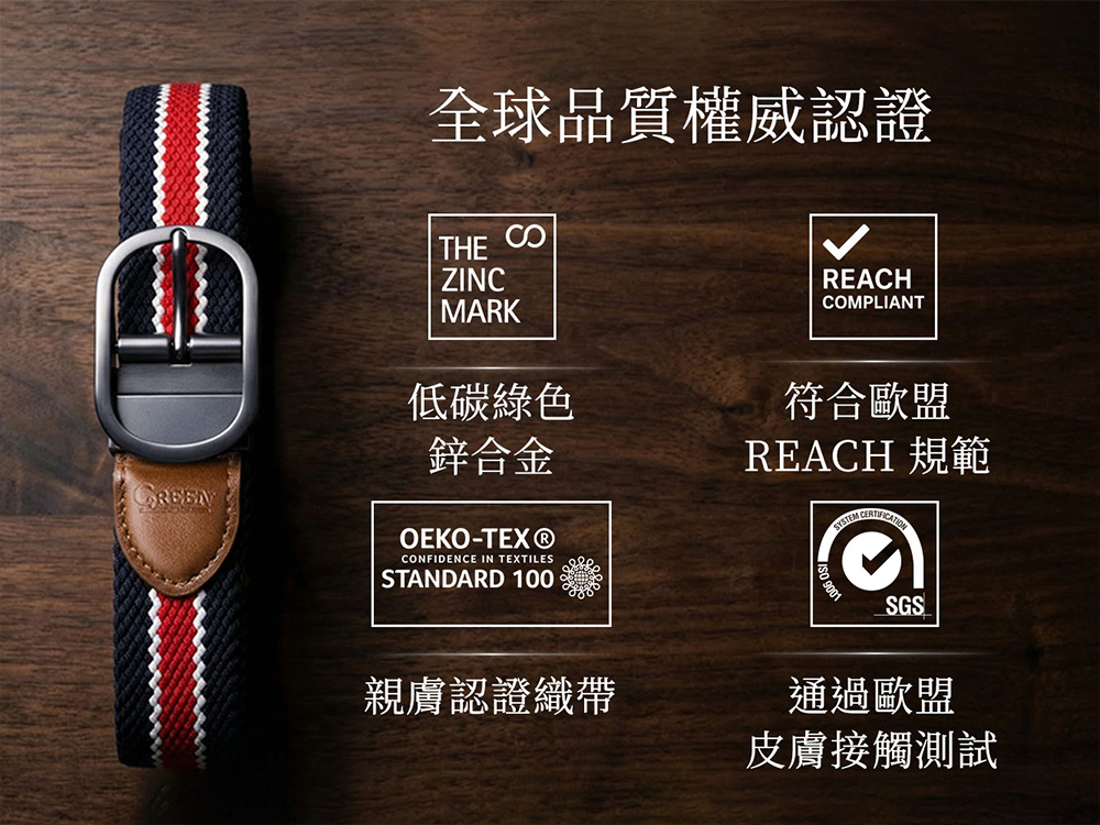 帶扣通過 SGS 測試,符合歐盟 REACH 規範,確保不含有害重金屬。