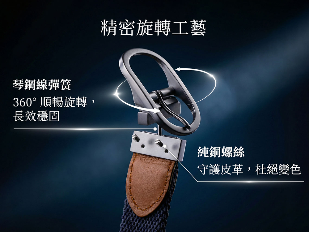 360°旋轉結構,採用琴鋼線彈簧打造,兼具伸縮與高韌度,穩定不鬆脫,可快速翻轉切換顏色。