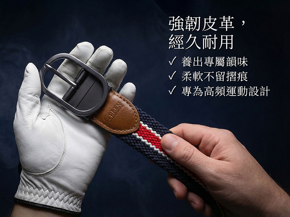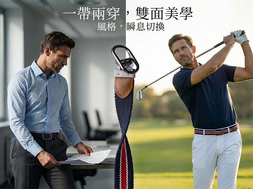Green Golf 高爾夫皮帶 腰帶 雙面彈性編織 一帶兩穿 360°旋轉帶扣