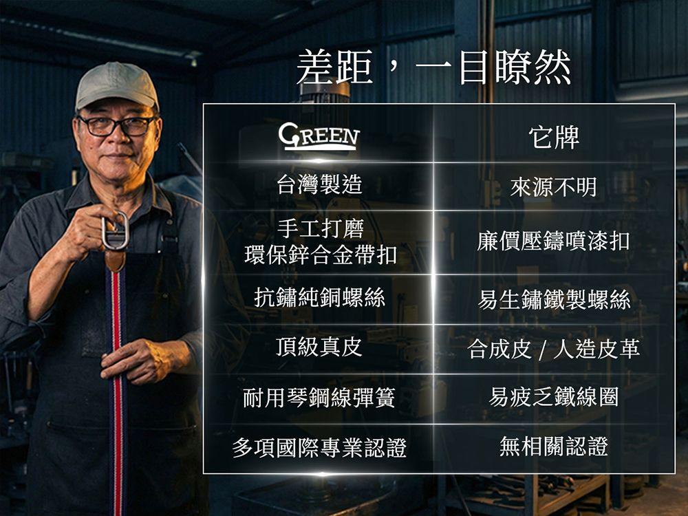 帶扣採用原廠 Nyrstar 綠色鋅合金低碳原物料,碳足跡減少 80%。