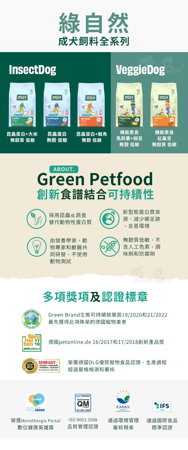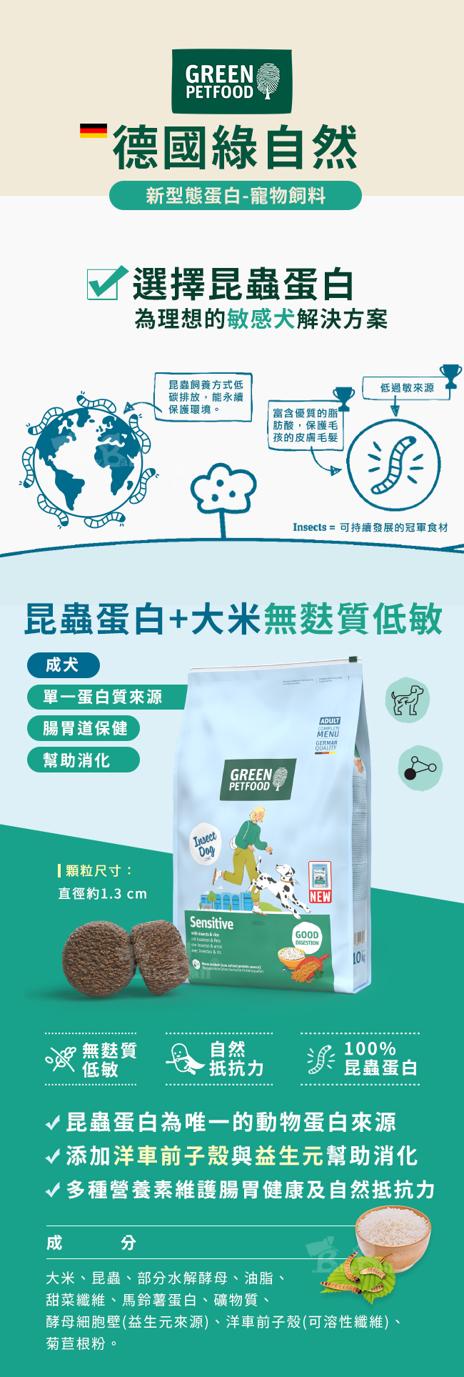 【倆寶貝精品館】Green Petfood德國綠自然 昆蟲蛋白+大米 無麩質低敏成犬飼料3KG