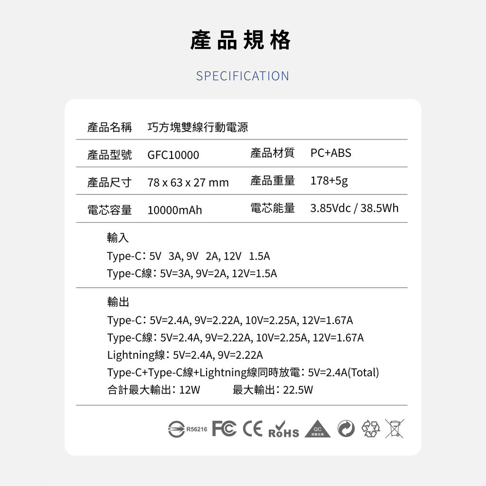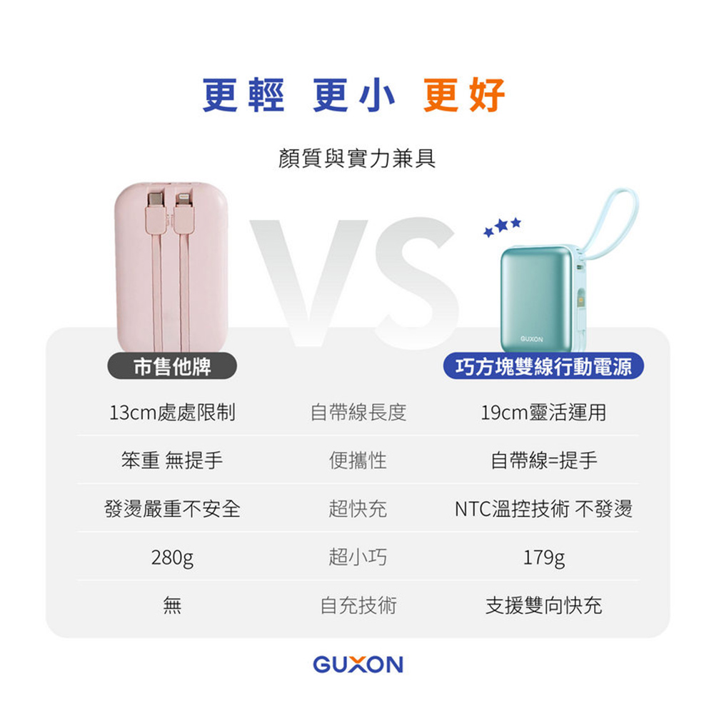 【 GUXON】巧方塊雙線行動電源 10000mAh-琉璃藍