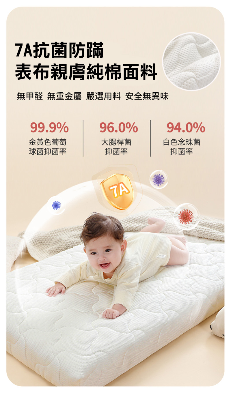 HABABY環安家居人體工學日本空氣織维床垫(厚5公分)120*70(婴兒床型用)可水洗 加厚床墊