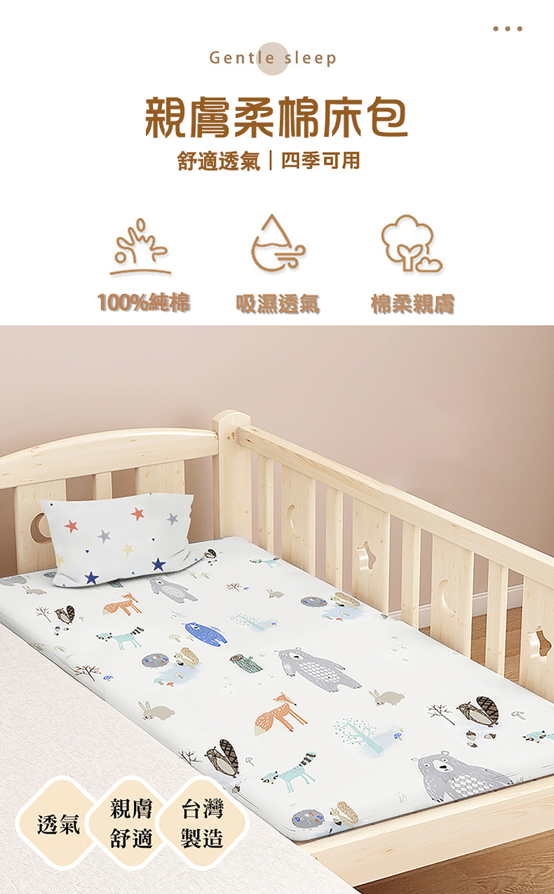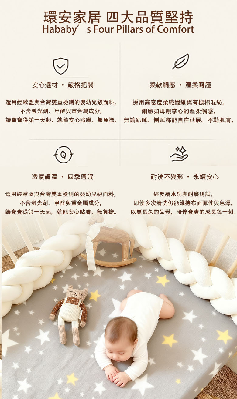 寶寶的舒適安睡,從我們的嬰兒床包開始。我們自豪地推出這款100%台灣製造的嬰兒床包,專為給您的小寶貝提供最優質的睡眠環境。