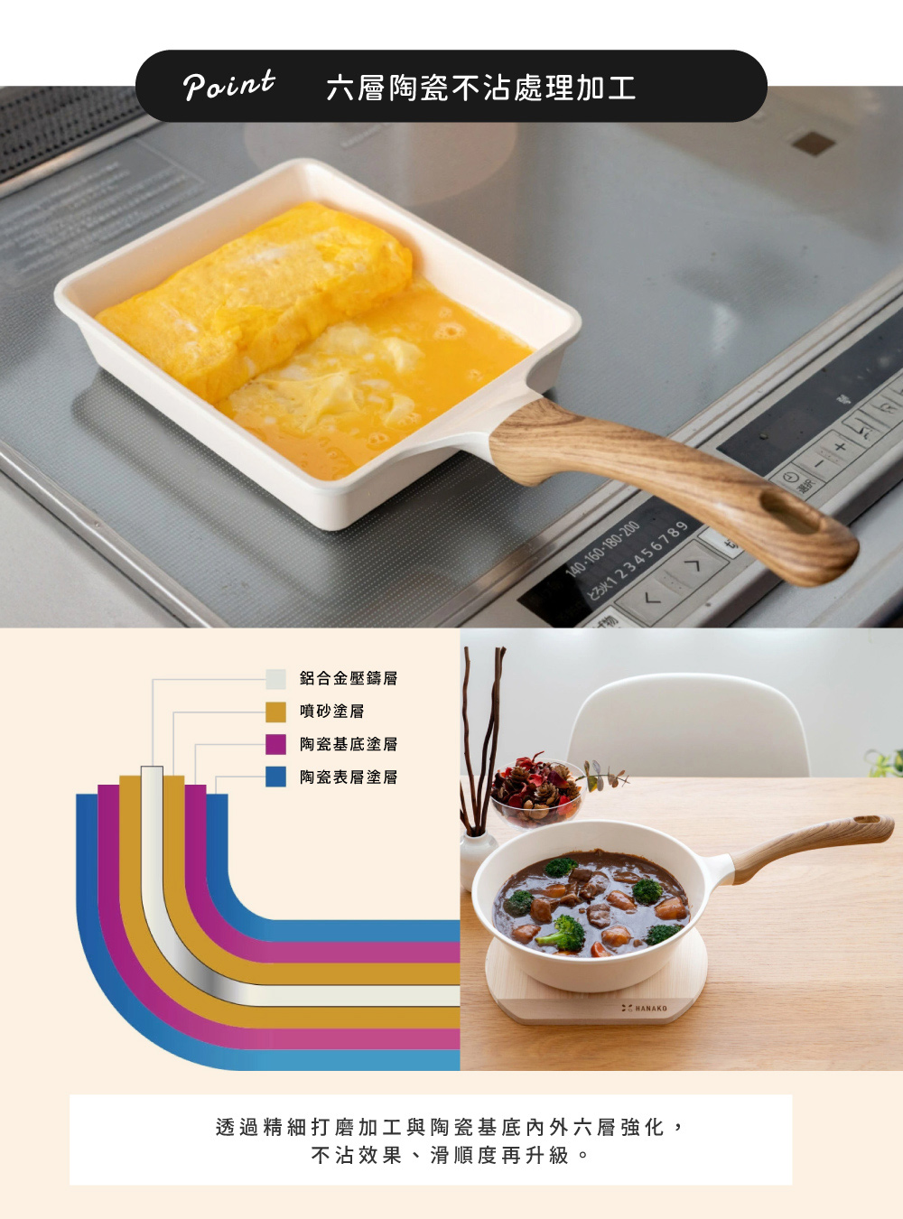 【HANAKO】日本六層陶瓷不沾鍋/玉子燒鍋(IH瓦斯爐兩用/導熱快易清洗/輕量設計)