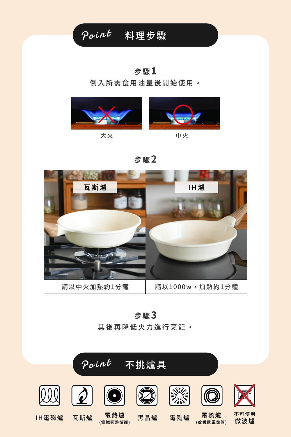 不挑爐具,瓦斯爐電磁爐IH爐皆可用。
