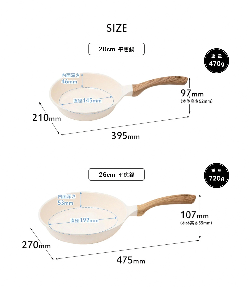 20cm的輕巧尺寸,適合做早餐或是想快速烹飪出一道料理時,也很適合用來製作便當配菜的尺寸。