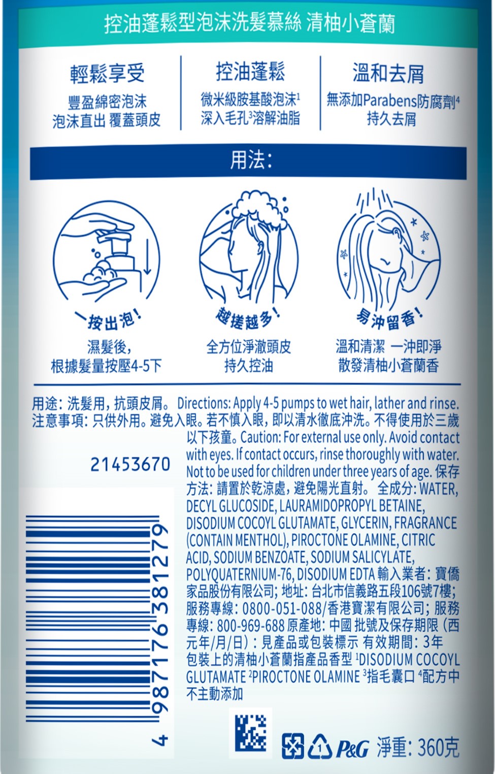 海倫仙度絲控油蓬鬆型泡沫洗髮慕絲