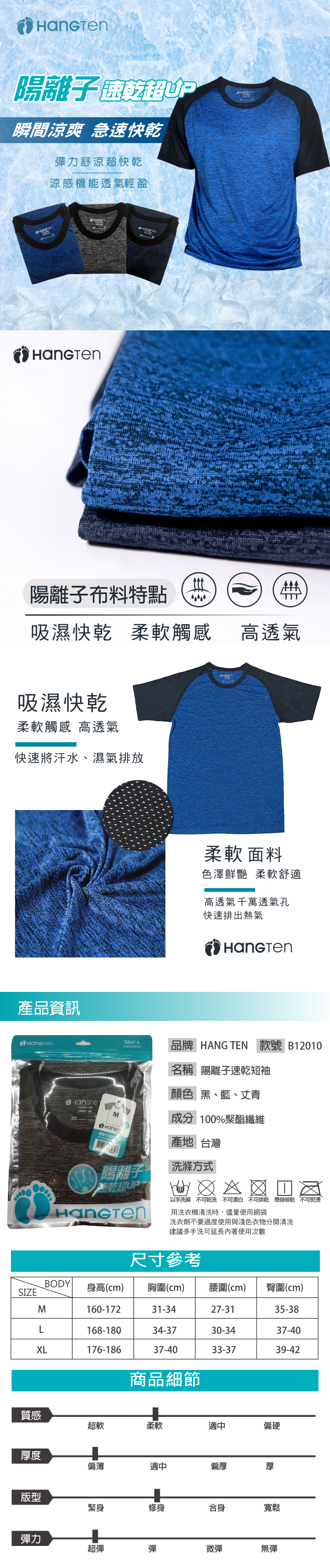 Hangten 陽離子速乾短袖衫-M(顏色隨機出貨)