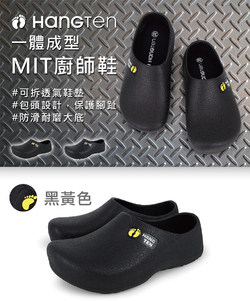 HANG TEN 廚師鞋 工作鞋 拖鞋 懶人鞋 男鞋 女鞋 MIT台灣製 防水 減壓 透氣 散熱 排汗 耐磨 防滑 黑桔