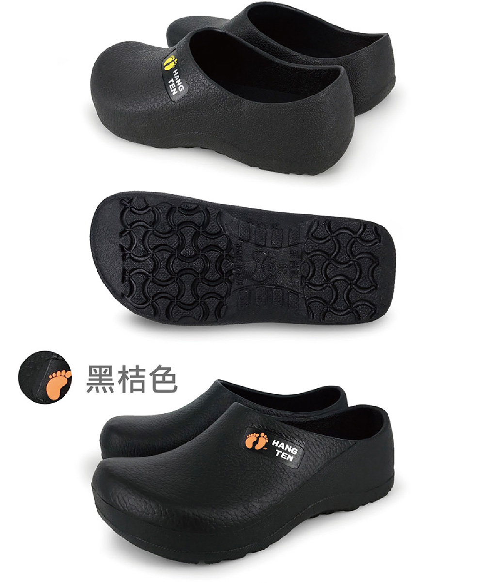 HANG TEN 廚師鞋 工作鞋 拖鞋 懶人鞋 男鞋 女鞋 MIT台灣製 防水 減壓 透氣 散熱 排汗 耐磨 防滑 黑黃