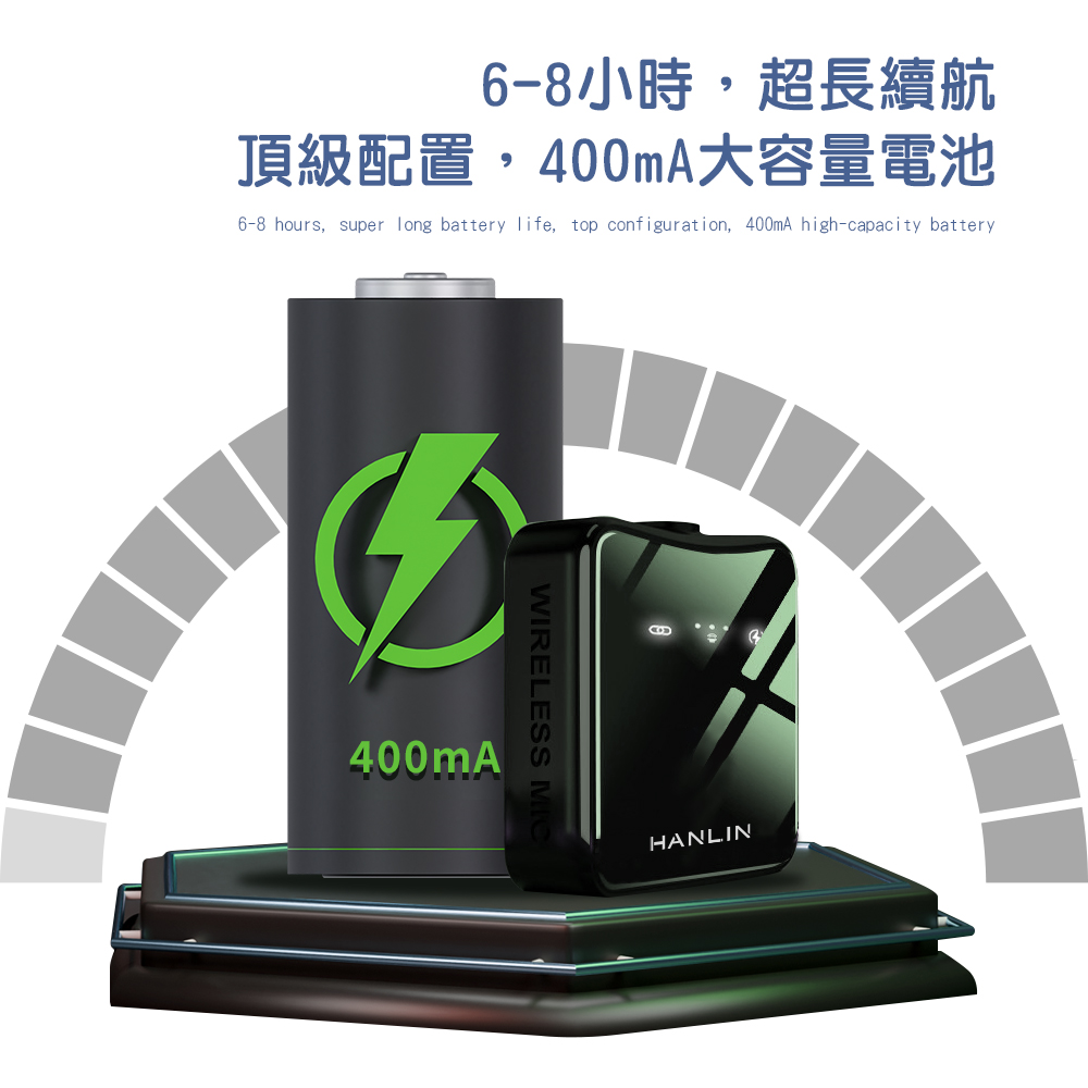 產品特點:1.解決手機錄音時,裝置不能撥放音樂的問題2.自帶混音邊錄邊聽3.雙向監聽,隨時調整4.雙向靜音,隨時暫停5.即插即用,開機自動配對6.距離50M無線傳輸7.輕薄機身,自由配戴8.超長續航,6-8小時全面兼容99% 設備/場景產品適用於單眼相機/微單眼/攝影機 蘋果/安卓手機音效卡/錄音筆等...產品規格:產品品牌:HANLIN產品型號:HAL51傳輸距離:約50米產品重量:約26g產品尺寸:約4x4x1.5cm發射功率:16dbm失真率:<1%(1KHz)靈敏度:-40db+2db收發範圍:570-600MHz無線頻率:100Hz-10KHz產品材質:ABS+電子元件續航時間:約6-8小時電池容量:約400mAh聚合物電池充電電壓:DC 5V(嚴禁使用快充頭)NCC認證號:CCAJ22LP5200T1注意事項:※所有商品皆為手工測量,尺寸可能有1~3mm誤差。※顏色可能因拍照光線、螢幕不同等原因, 導致可能會有色差。 一切以實物為主。※避免高溫、潮濕或強磁場環境。HAL51-連線步驟1.RX與TX開機 配對上 RX狀燈會變成恆亮(表示已配對)2.需使用原廠轉接線將手機轉成3.5MM音源孔 RX接上附贈的PHONE連接線>TYP-C孔接在RX的下方 將3.5MM的音源線接在手機轉接出來的音源孔3.拿著TX,即可使用無線麥克風短按一下 TX上的開關機鍵 藍芽閃爍 手機開啟藍芽連結配對(若有需要使用背景音才做藍牙連接)