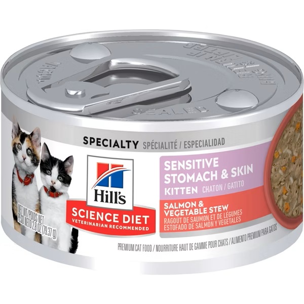 【Hills 希爾思】幼貓 敏感胃腸與皮膚鮭魚燴蔬菜主食罐 2.8oz 79gX6罐/盒 (608562)