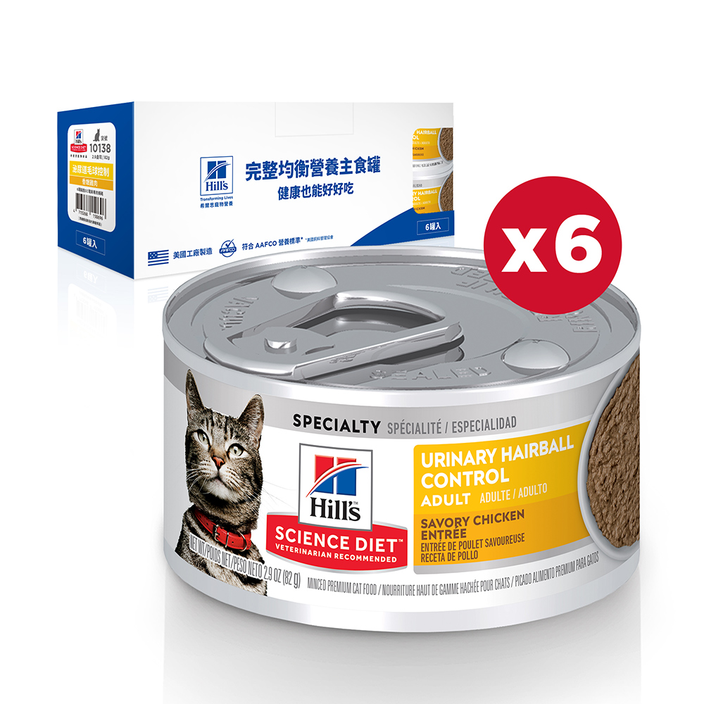 【Hills 希爾思】成貓泌尿道毛球控制主食罐-香嫩雞肉 82gX6罐/盒(10138)