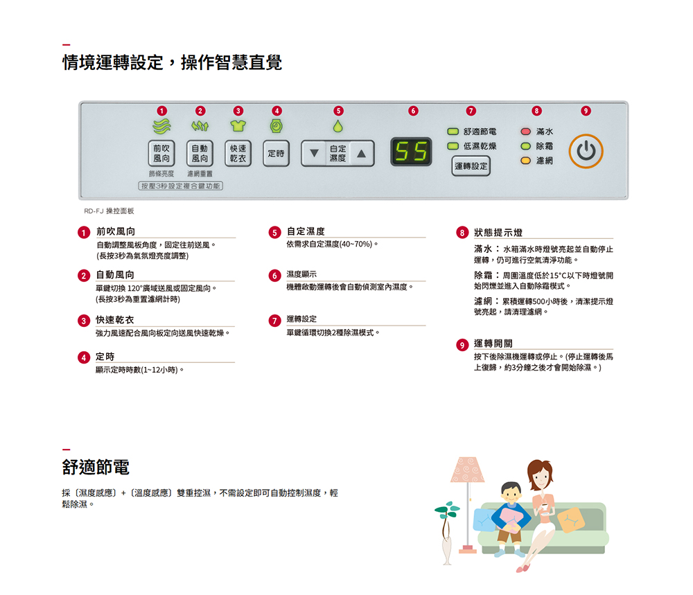 【商品名稱】HITACHI 日立一級能效 9公升 舒適節電除濕機 RD-18FJ 璀璨白【原產地】台灣【型號】RD-18FJ【顏色】璀璨白【節能/除濕】 .除濕能力:9 (公升/日) .能源效率等級:第1級【清淨】 .高密度平織空氣濾網:★ .PM2.5濾網:★【貼心設計】 .風向控制:超廣角上吹+前吹 .滿水自動停止運轉:燈號 / 警示聲 .滴水靜音 / 連續排水:★ .底部滑輪:四輪萬向移動 .自定濕度 / 濕度顯示:★ .快速乾衣:★ .定時運轉(h):1~12 h .LED運轉模式指示燈:藍(除濕)/紅(滿水) .濾網清掃提示:★ .手機APP遙控:另 購 (RC-W04XE)【安全】 .迴轉式壓縮機:★ .停電自動復歸 / 自動除霜:★ .多項防護裝置:★【其他】 .LED面板顯示/ 操控:LED觸控式面板 .R-134a冷媒 / 高效DC馬達:★ .MIT微笑標章:★ .環保標章:申請中 .節能標章:★ .適用室溫範圍:5~35℃ .電源:單相/110V/60Hz .水箱容量:高/低水位二段可調(高:約5公升;低:約3.8公升) .外型尺寸 寬×高×深(mm):365x625x235 .製品重量(kg):14.5【商品保固】 .3年保固【BSMI商檢字號】R41010【商品特點】 .舒適節電 .低濕乾燥 .快速乾衣#HITACHI #HITACHI 日立 #一級 #能效 #9 #公升 #舒適 #節電 #除濕機 #RD18FJ #璀璨 #白