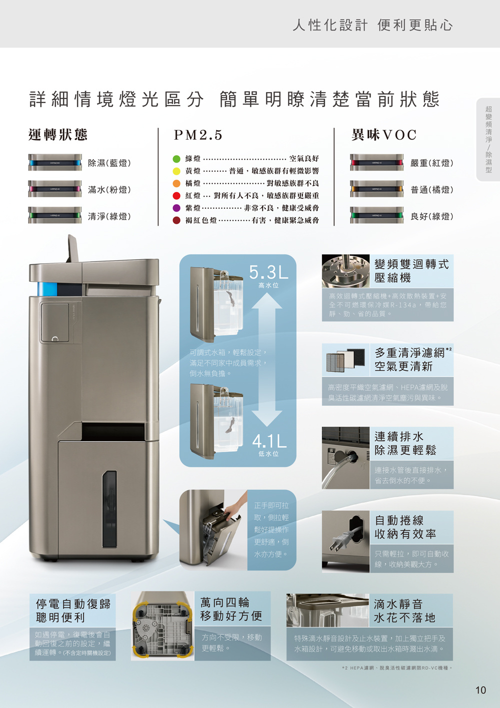 商品名稱:【HITACHI 日立】26公升超變頻清淨型除濕機RD-520VC極光鈦顏色:極光鈦室溫27°C/濕度60%:除濕能力 26公升/日適用溫度:1°C〜40°C電源:110v 60Hz水箱容量:大約5.3公升空氣清淨CASR值;4.2 cmm環保冷媒R-134a變頻雙迴轉式壓縮機重量:22kg外型尺寸:寬385×高745×深330mm保固:全機三年BSMI:R41010除濕機 1 級能源效率