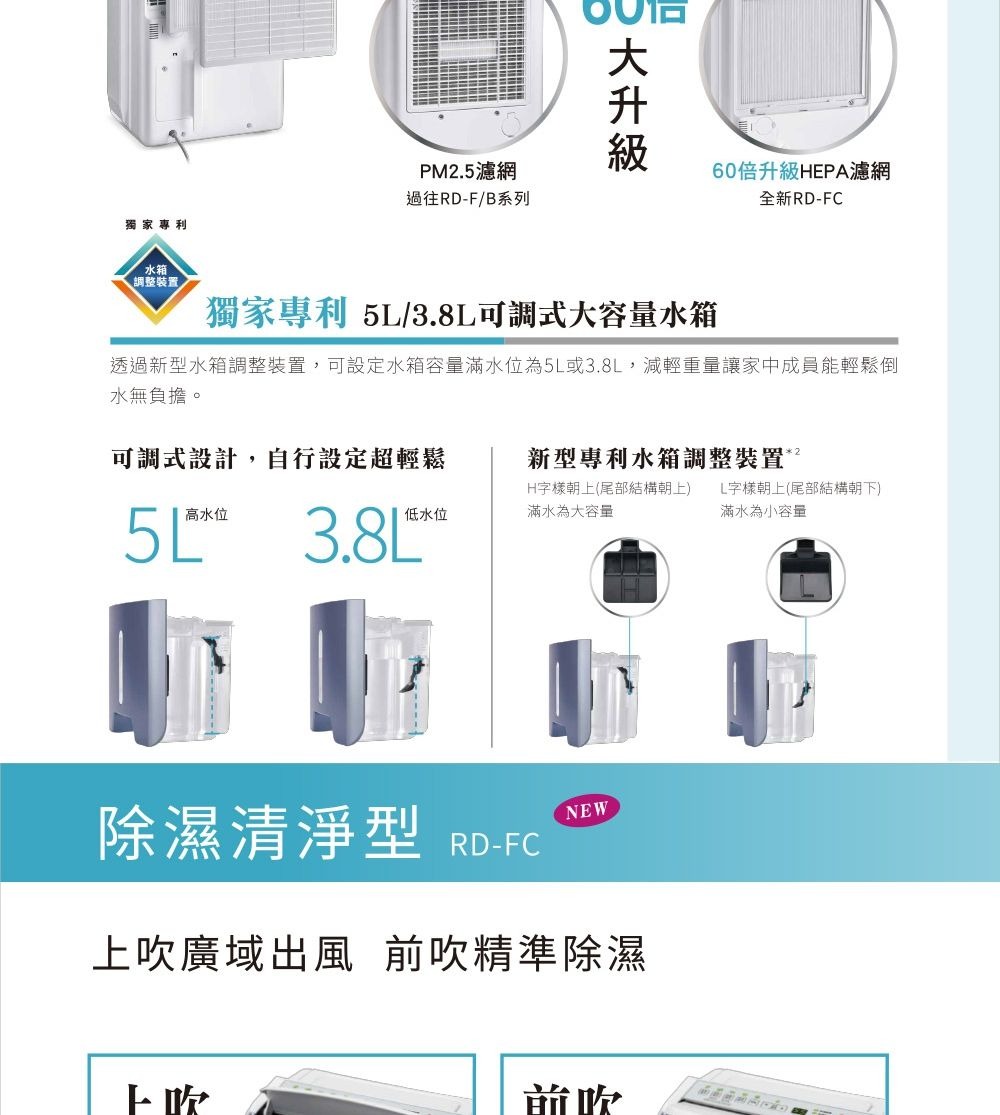 【商品名稱】HITACHI 日立一級能效 9公升 清淨型除濕機 RD-18FC 榮耀紫【原產地】台灣【型號】RD-18FC【顏色】榮耀紫【節能/除濕】 .除濕能力:9 (公升/日) .能源效率等級:第1級【空氣清淨】 .潔淨空氣提供率(Dust)CASR值(cmm):2.12 .能源效率值(Dust)CASR/W(cmm/W):0.208 .待機功率(W):0.85 .能源效率等級:第1級【清淨】 .高密度平織空氣濾網:★ .HEPA濾網:★【貼心設計】 .風向控制:超廣角上吹+前吹 .滿水自動停止運轉:燈號 / 警示聲 .滴水靜音 / 連續排水:★ .底部滑輪:四輪萬向移動 .自定濕度 / 濕度顯示:★ .快速乾衣:★ .定時運轉(h):1~12 h .LED運轉模式指示燈:藍(除濕清淨) / 紅(滿水) / 綠(清淨) .濾網清掃提示:★ .手機APP遙控:另 購 (RC-W04XE)【安全】 .迴轉式壓縮機:★ .停電自動復歸 / 自動除霜:★ .多項防護裝置:★【其他】 .LED面板顯示/ 操控:LED觸控式面板 .R-134a冷媒 / 高效DC馬達:★ .MIT微笑標章:★ .環保標章:申請中 .節能標章:★ .適用室溫範圍:5~35℃ .電源:單相/110V/60Hz .水箱容量:高/低水位二段可調(高:約5公升;低:約3.8公升) .外型尺寸 寬×高×深(mm):365x625x235 .製品重量(kg):15【商品保固】 .3年保固【BSMI商檢字號】R41010【商品特點】 .雲端智慧控 .雙重清淨過濾 .高效除溼#HITACHI #HITACHI 日立 #一級 #能效 #9 #公升 #清淨型 #除濕機 #RD18FC #榮耀 #紫