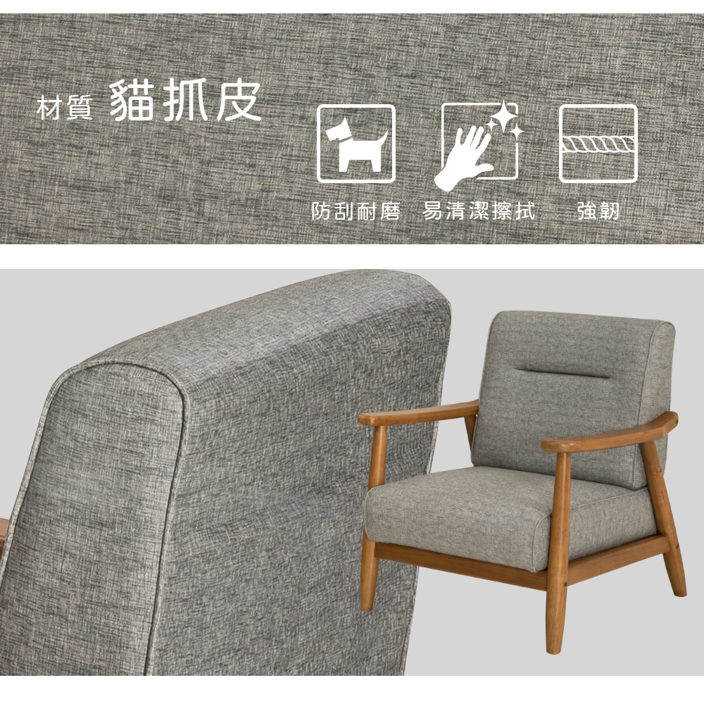 ◆耐刮、耐磨的貓抓皮材質◆實木材質框架,穩固耐用◆單人、二人、三人一次購足◆厚實舒適的泡棉坐墊◆免組裝,專人配送定位整體配件:單人座 + 雙人座 + 三人座尺寸: 單人座 - 寬 71 x 深 65 x 高 80 cm 雙人座 - 寬 127 x 深 65 x 高 80 cm 三人座 - 寬 178 x 深 65 x 高 80 cm材質:貓抓皮、實木、高密度泡棉顏色:鐵灰色產地:越南誤差值:因人工丈量,尺寸±5%內為正常範圍