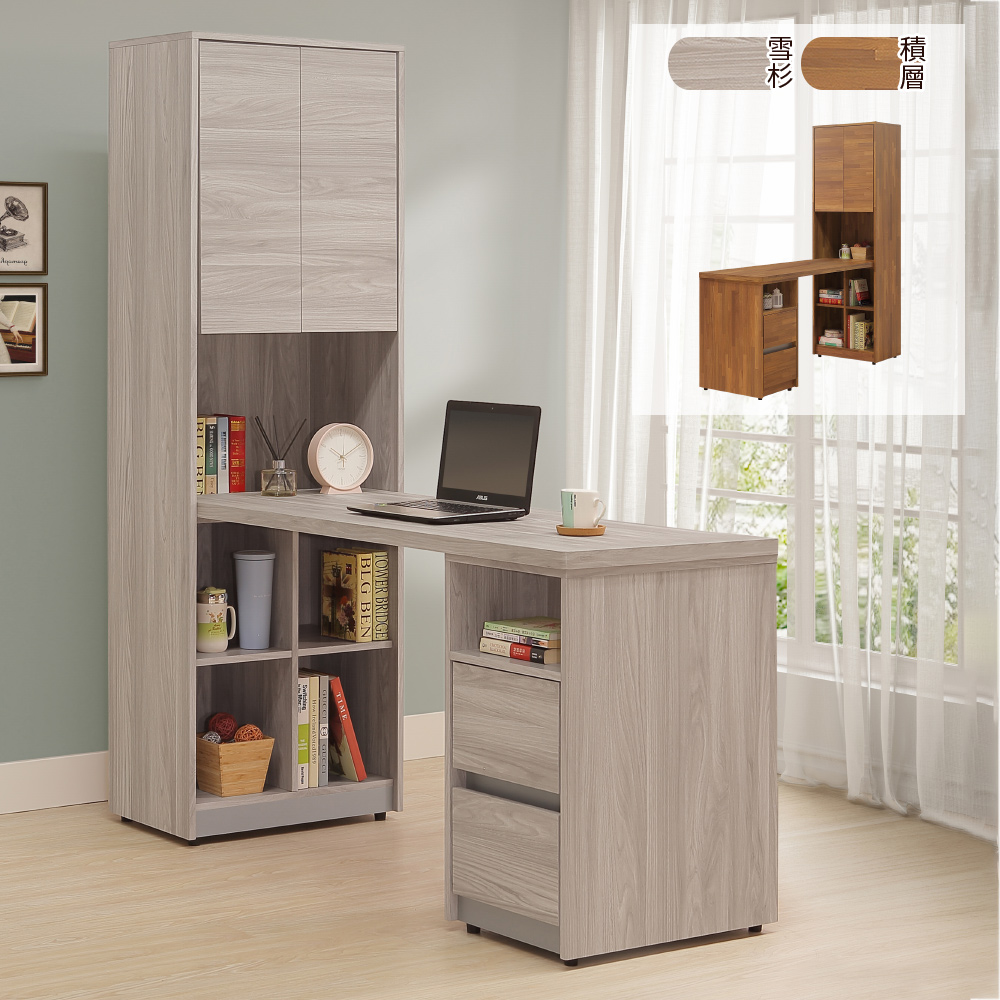 【Homelike】喜家居 L型組合書桌櫃組(雪杉色)(2350)