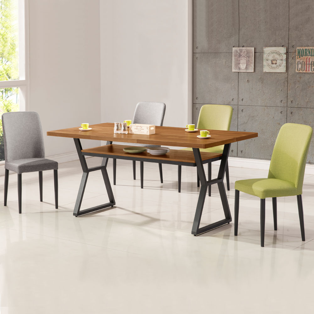 【Homelike】喜家居工業風5尺餐桌椅組(一桌四椅)二灰二綠椅(1723)
