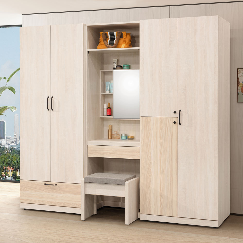 【Homelike】喜家居7尺衣櫃組(含化妝椅)-梧桐拼色(2305)
