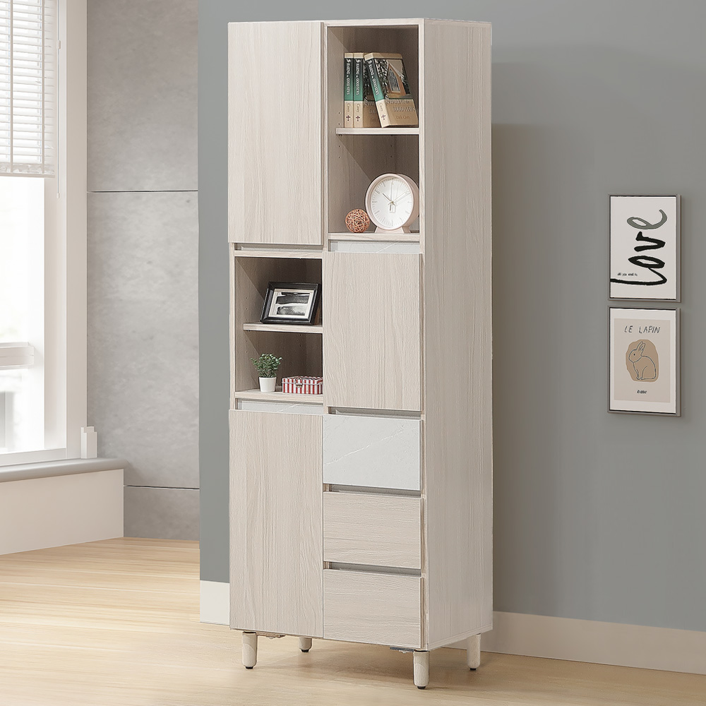 ◆抽屜+門櫃+開放格設計◆挑高腳,隔離地面濕氣◆抽屜採用鋼珠滑軌設計◆活動板,可依需求調整◆緩衝門板,可減少噪音◆質感美耐皿仿石岩紋路◆嚴選木心板,穩固耐用◆美背處理,正反都美麗◆極簡主義,現代簡約風◆白榆木,清新淡雅色調◆免組裝,專人配送到府尺寸:寬 66 x 深 40 x 高 190 公分材質:高級木心板、美耐皿顏色:白榆木雙色產地:台灣誤差值:因人工丈量,尺寸±5%內為正常範圍