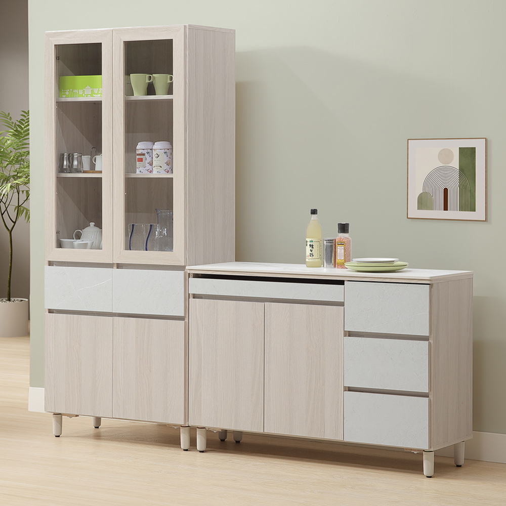 【Homelike】喜家居6.7尺岩板組合餐櫃(4尺餐櫃+中抽櫃)(2347)