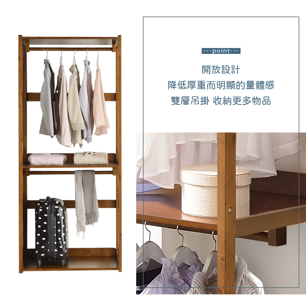 【Homelike】喜家居5.4尺開放實木衣櫃-胡桃色(2259)
