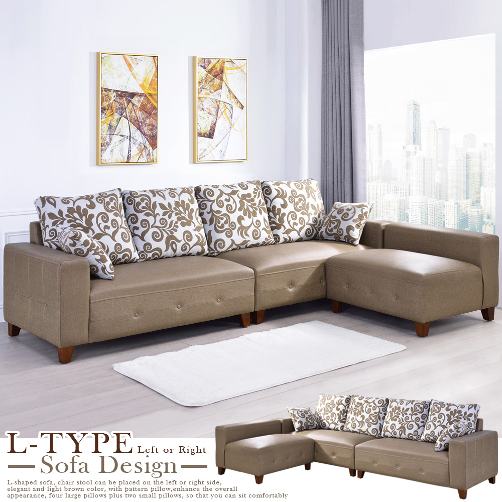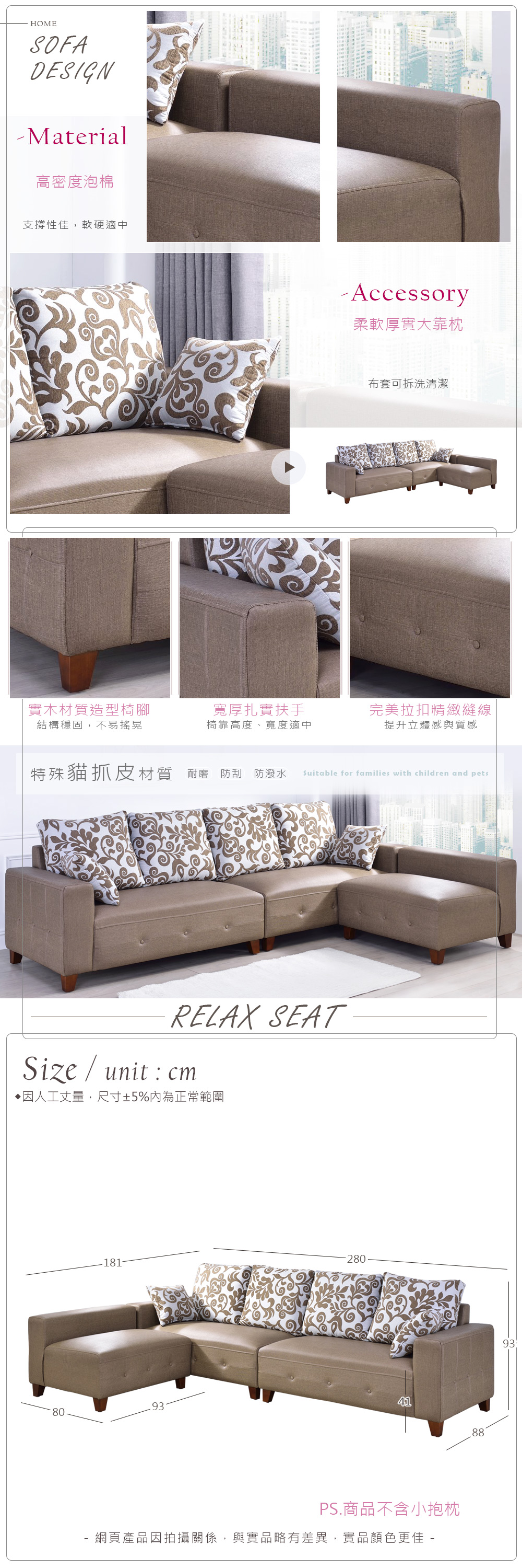 【Homelike】喜家居L型貓抓皮沙發組-奶茶棕(1870)