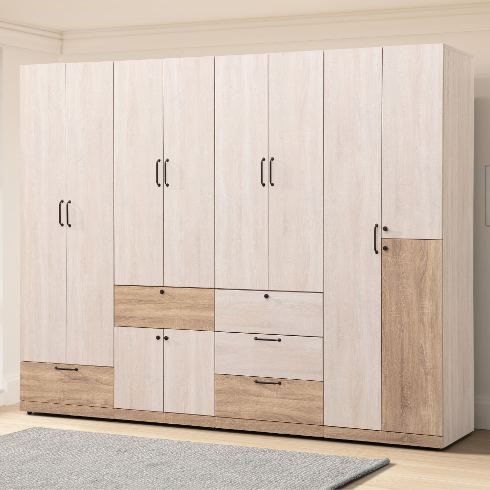 【Homelike】喜家居8尺組合衣櫃(梧桐拼色)(2233)