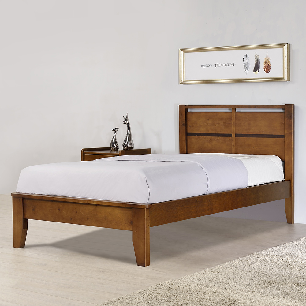 ◆透氣床板設計,透氣不悶熱◆實木材質,美觀耐用◆簡約質感造型床頭◆免組裝,專人配送到府◆可作二段式調整高度整體配件:3.5尺床架 x 1(不含床墊)尺寸:寬 109 x 深 198 x 高 95 公分適用床墊:3.5 x 6.2 尺材質:實木框、實木夾板顏色:胡桃色產地:越南誤差值:因人工丈量,尺寸±5%內為正常範圍