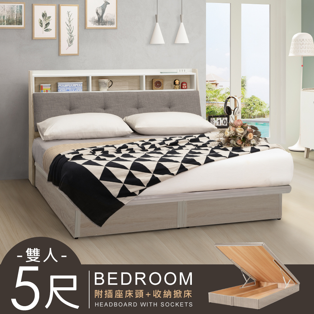 【Homelike】喜家居雙人5尺附插座掀床組(2151)