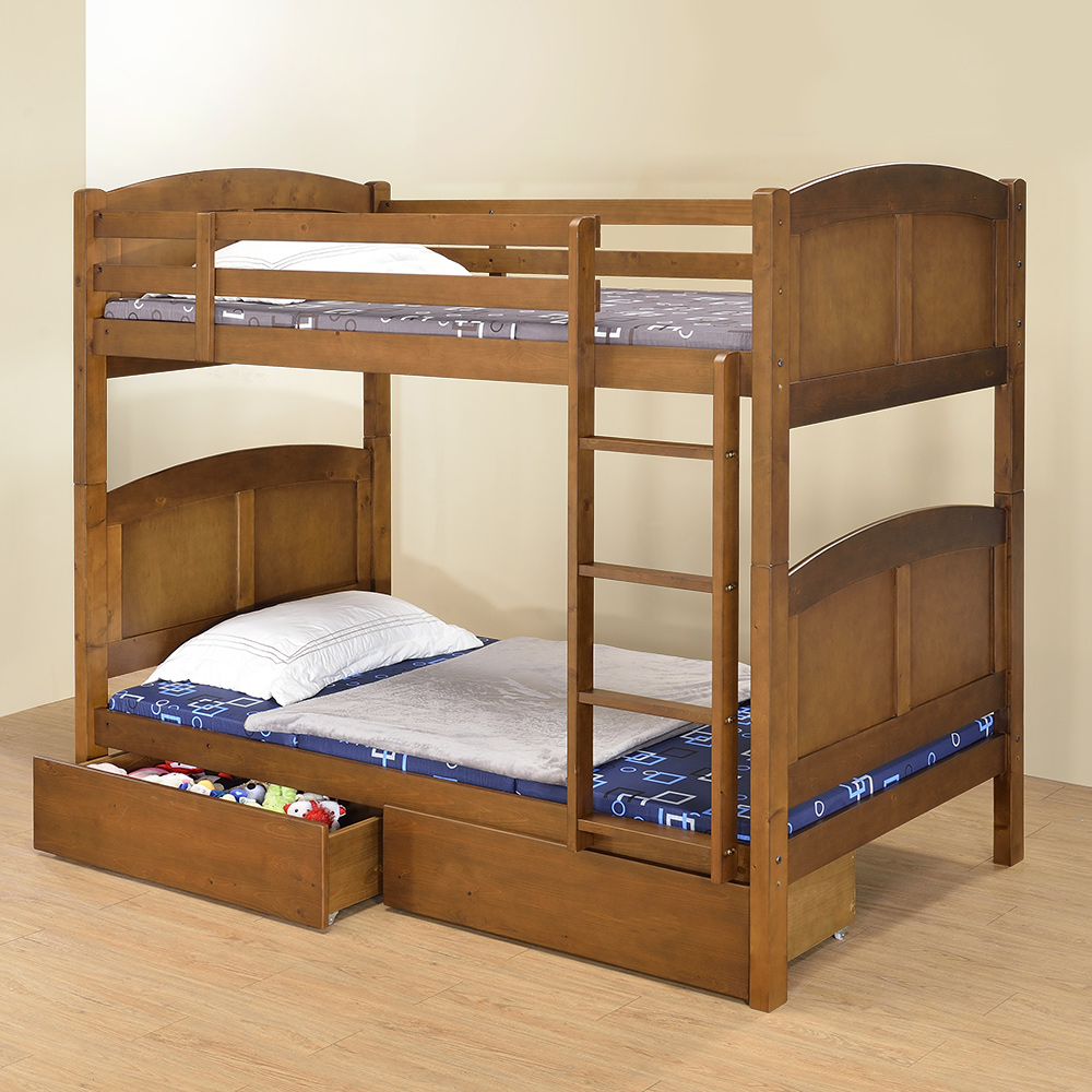 【Homelike】喜家居胡桃色實木雙層床(附抽屜x2)(2252)