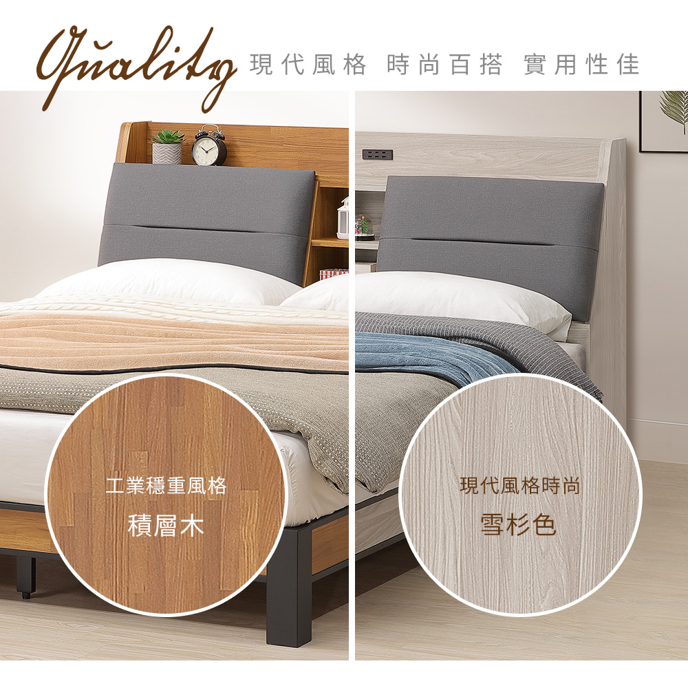 【Homelike】喜家居雙人5尺附插座床架組(雪杉色)(2350)