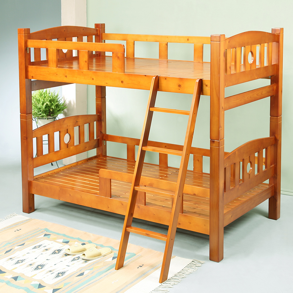 ◆透氣床板設計,床墊不悶熱◆側邊簍空設計◆可拆成二張單人床◆免組裝,專人配送到府◆掛勾式斜樓梯設計整體配件:3.5尺雙層床x1(不含床墊)尺寸:長 204 x 寬 115 x 高 169 公分適用床墊:3.5 x 6.2 尺材質:松木+實木夾板顏色:柚木色產地:越南誤差值:因人工丈量,尺寸±5%內為正常範圍