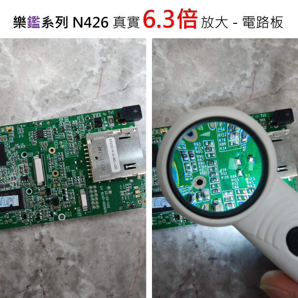 產品介紹「樂鑑」系列是專為解決銀髮族老花眼、熟齡族閱讀輔助與兒童自然探索需求所設計的高CP值入門放大鏡產品。它不僅是一個手持視覺輔具,更集結了放大觀察、LED照明與紫外線UV鑑定等多功能於一身,是家庭不可或缺的多功能視覺輔助工具。全系列搭載2顆高亮度白光LED照明燈與1顆UV燈,能提供充足光源,幫助使用者在昏暗環境中仍能清晰閱讀藥品說明、報章雜誌,或進行夜間細節觀察。這款帶燈手持放大鏡是長者閱讀輔助、兒童戶外學習的最佳選擇。為滿足不同程度的視力需求,「樂鑑」系列涵蓋多種放大倍率,從適合閱讀報章雜誌的中低倍率到可觀看小字與物件細節的高倍率,確保使用者能找到最適合自己的觀看焦段,使其成為實用的低視力輔具選項。鏡片採用光學級壓克力材質,具備高透光性,輕巧設計適合長者長時間手持閱讀。鏡片更經過專業的表面硬化鍍膜 (Hard-Coating) 加工處理,實測達到4H鉛筆硬度,能有效防止刮傷,確保長久維持清晰成像品質,是您最可靠的抗刮閱讀器。 無論是用於壯年銀髮族的樂齡學習、老花族觀看書信,或用於紙鈔真偽鑑定與物品檢查,「樂鑑」都以親民的價格,提供實用、安心又易於使用的視覺輔助解決方案。它的多功能性使其成為家庭必備的好幫手。選擇「樂鑑」系列,就是選擇清晰、輕鬆、耐用的觀看體驗。這款高CP值LED放大鏡不只是看得見,更是看得清、看得輕鬆、看得安心!產品特色真實6.3倍高倍放大細節 / 高倍單眼觀察設計本產品鏡面直徑為35mm,建議使用透過單一眼睛進行觀看,可以輕鬆將細節與小字放大,適合壯年人士、長輩、銀髮族閱讀書報、雜誌,產線品檢、觀看細節等。光學級壓克力鏡片 / 4H鉛筆硬度等級 Hard-Coating 表面硬化鍍膜透光性高,成像品質優良。重量輕巧,即使不慎掉落,鏡片也不會碎裂,特別適合銀髮族使用。鏡片經 Hard-Coating 表面硬化鍍膜加工,實測達 4H 鉛筆硬度,可對應日常清潔擦拭,不易產生刮痕。LED白光照明 & UV檢驗燈 / 一鍵式簡易操作採用2顆高亮度白光 LED 做為照明光源,具有照射角度大、省電、低溫、高亮度等優點,讓您即使在昏暗環境也能看得清楚。UV紫外線燈可進行UV油墨真偽檢驗、特殊品管、以及樹葉上的病蟲害等用途。透過握柄上的按鈕可一鍵切換,容易上手操作。