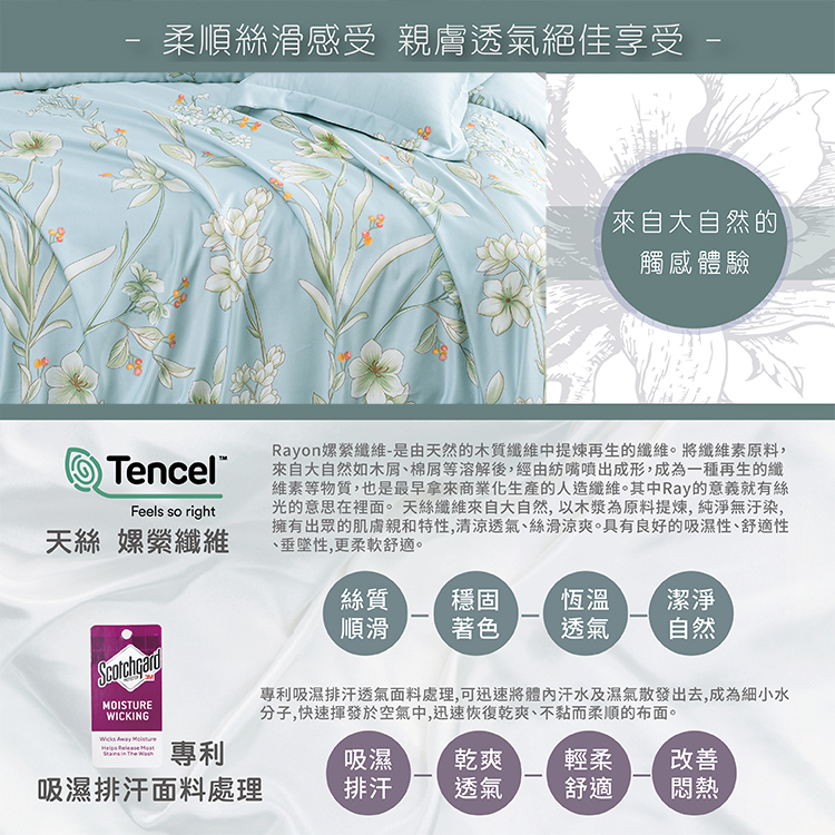 表布:50%萊賽爾纖維(天絲)、50%聚酯纖維