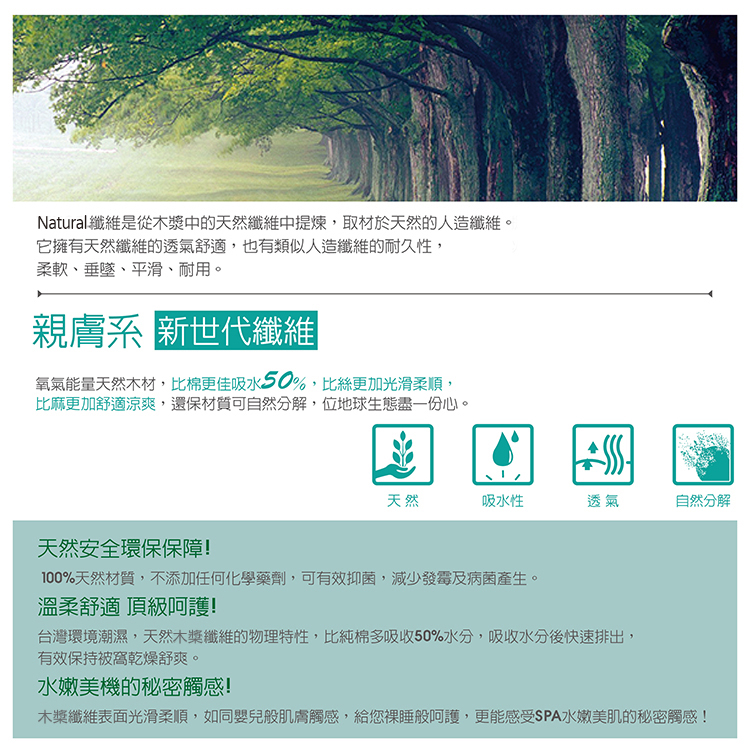 表布:50%萊賽爾纖維(天絲)、50%聚酯纖維
