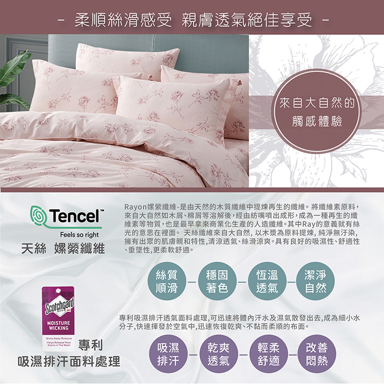 【多利寶寢具】Indian新科技天絲吸濕排汗雙人加大四件式床包兩用被組-乾燥玫瑰